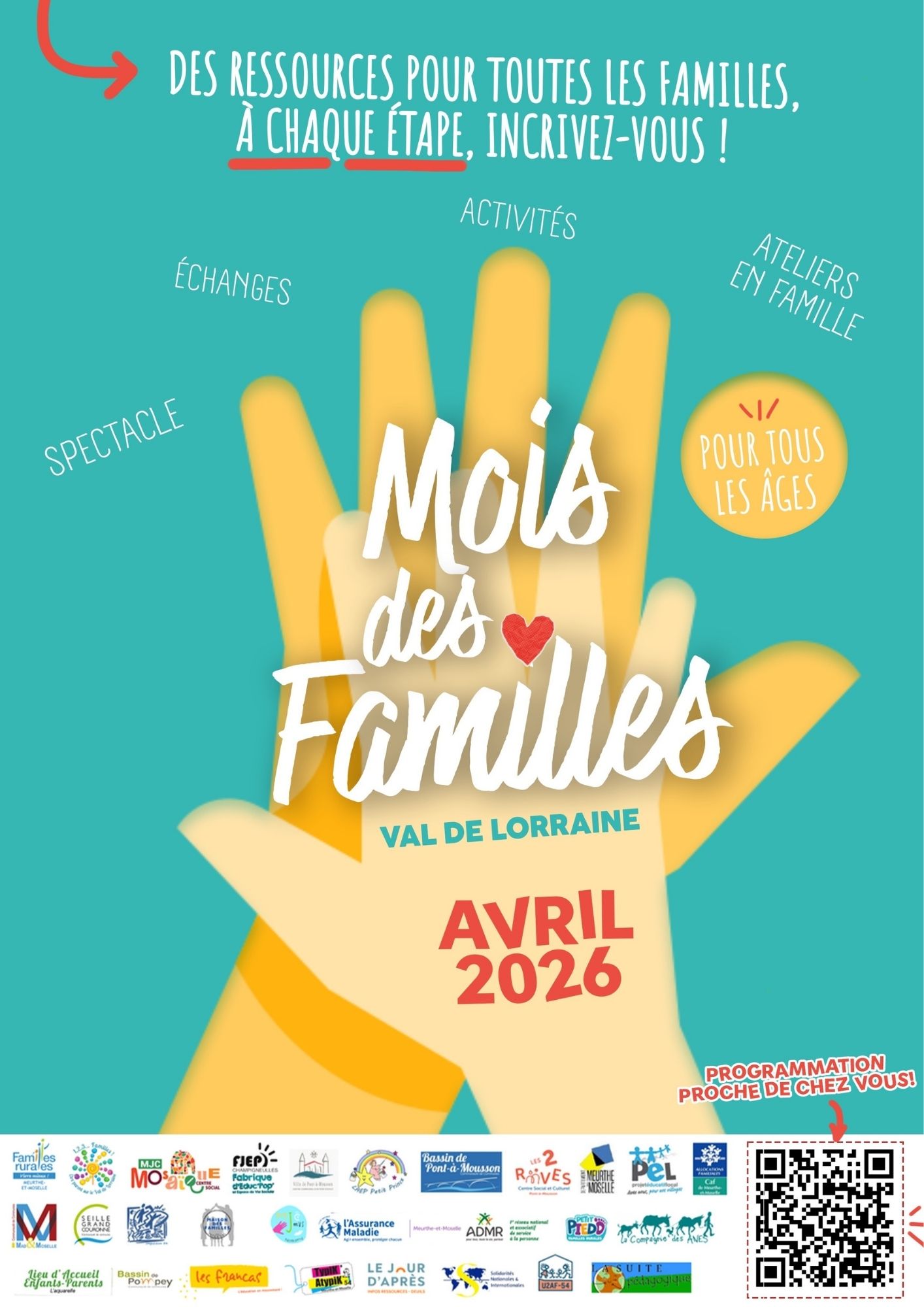 Pendant tout le mois d’avril, les structures de la coordination Petite Enfance, Parentalité du Val de Lorraine, mettent en place diverses actions (spectacles, animations, temps d’échanges, ateliers parents-enfants) pour petits et grands sur l’ensemble du territoire.